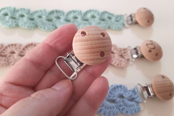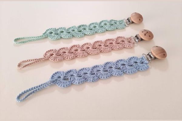 Hilos de algodón, aguja crochet 2.5mm, aguja de lana, tijeras y clips para portachupetes